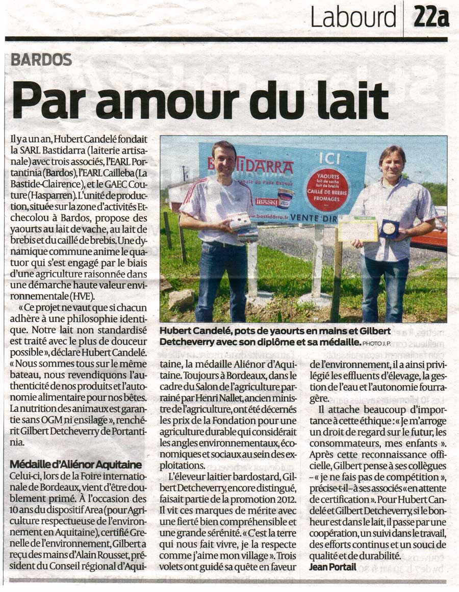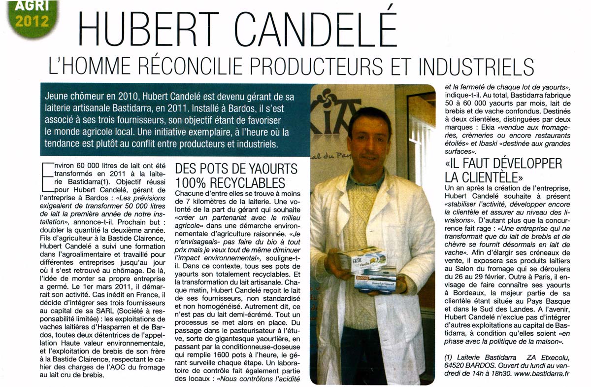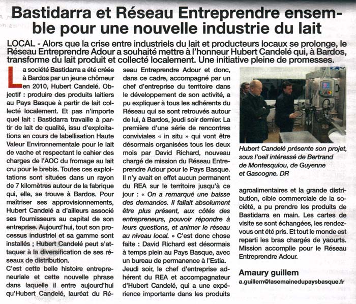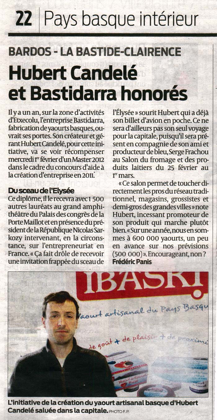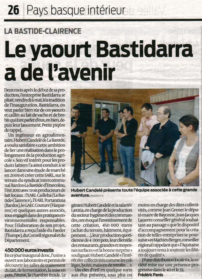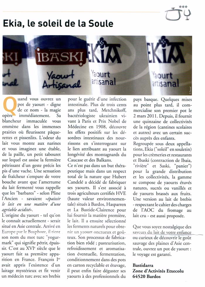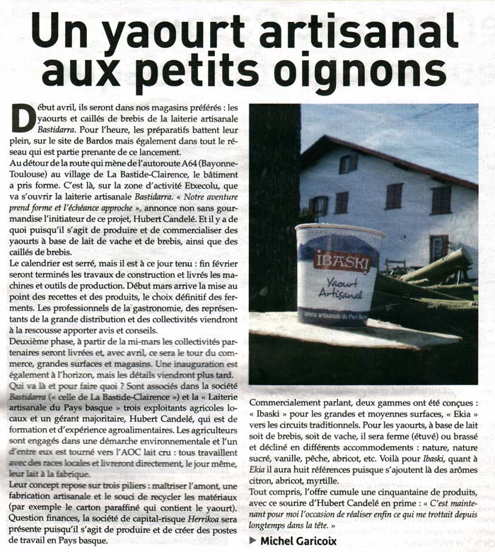 Bastidarra dans la presse ... les yaourts artisanals IBASKI et EKIA à la une ...